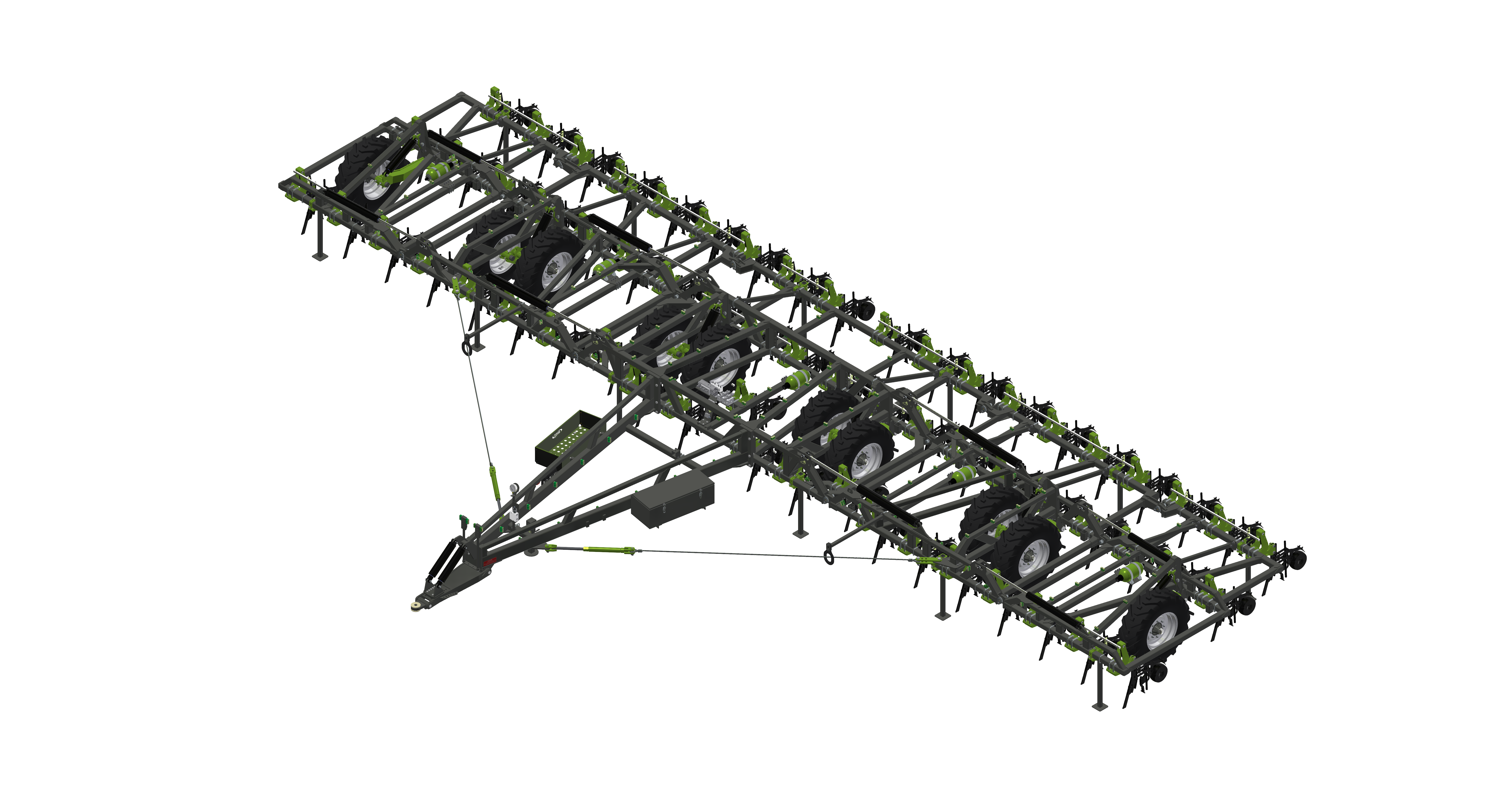 Created from customer demand for a simple, strong, cost effective narrow folding seeder frame for either tyne or disc units, with a high lift frame design and parallel lift. Designed for easy maneuverability and use on a variety of tractors.
